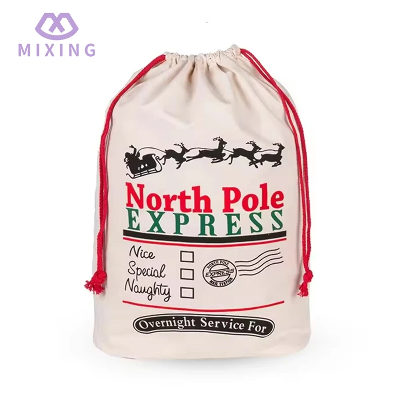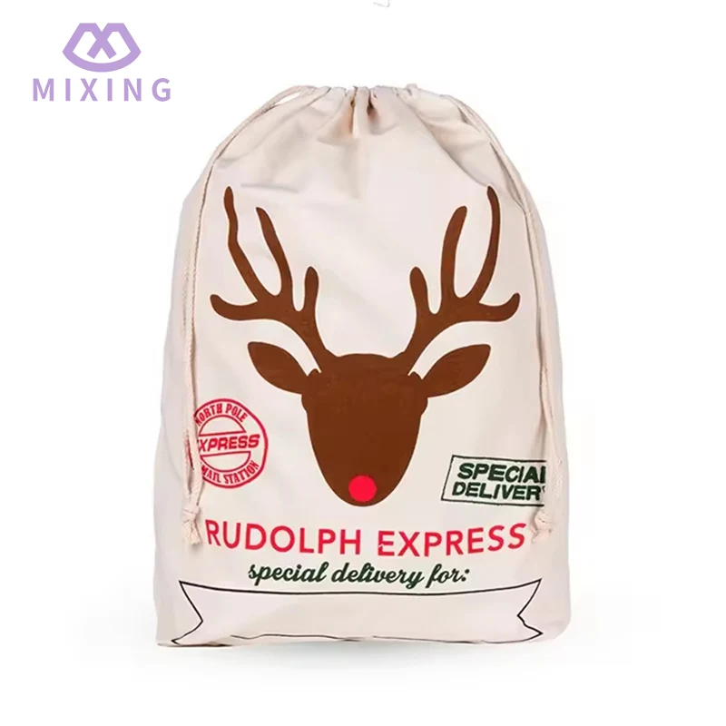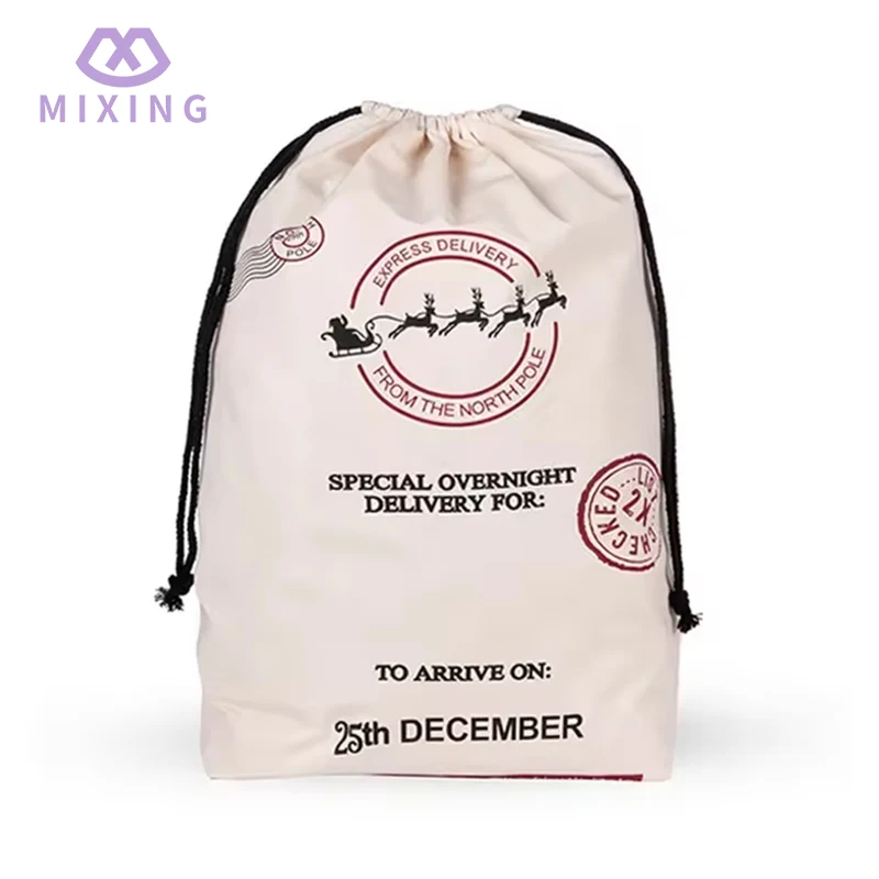 Tekstura retro grubego bawełnianego i lnianego materiału użytego w spersonalizowanym bawełnianym świątecznym worku Świętego Mikołaja, w połączeniu z typowymi elementami, takimi jak drewniane dekoracje, zielone gałęzie sosny i czerwone wstążki w okresie bożonarodzeniowym, może naturalnie wtopić się w ogólną dekorację świąteczną, nie sprawiając wrażenia nie na miejscu. Indywidualne, ekskluzywne wzory sprawiają, że torby wyłamują się z jednorodności zwykłych świątecznych opakowań, przekazując niepowtarzalne uczucia i ciepło, a także czyniąc proces wręczania prezentów świątecznych bardziej ceremonialnym.