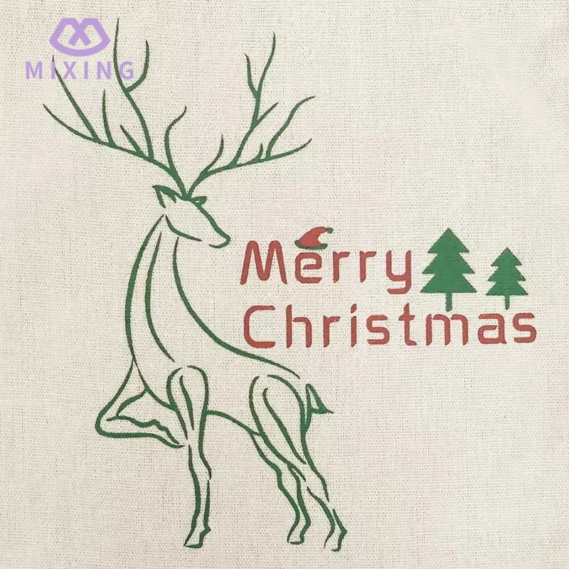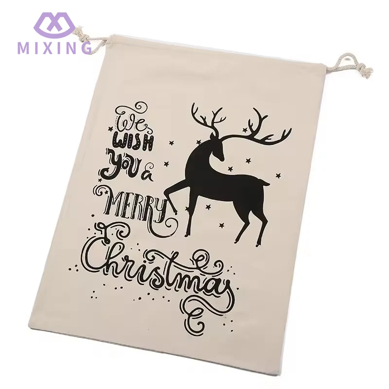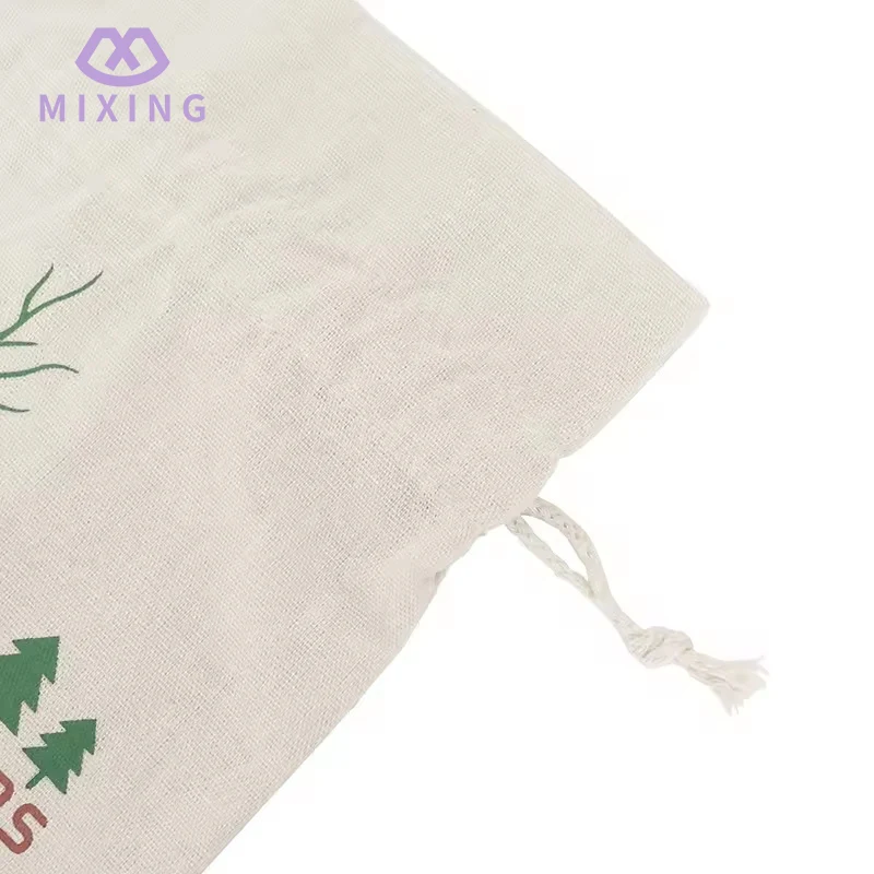 Tkanina wysokiej jakości dużego bawełnianego woreczka świątecznego ze sznurkiem firmy Mixing została poddana obróbce wstępnej. Po dotknięciu można wyczuć gęstą i delikatną fakturę charakterystyczną dla tkaniny bawełnianej. Nie ulega odkształceniom jak cienka tkanina bawełniana, nie jest też sztywna ze względu na twardość materiału. Może naturalnie zachować regularny kształt po załadowaniu przedmiotów. Korpus torby jest zadrukowany bogatymi wzorami o tematyce bożonarodzeniowej, które są jasne i dobrze komponują się z tkaniną, co pozwala uniknąć taniego wrażenia unoszenia się wzorów na powierzchni