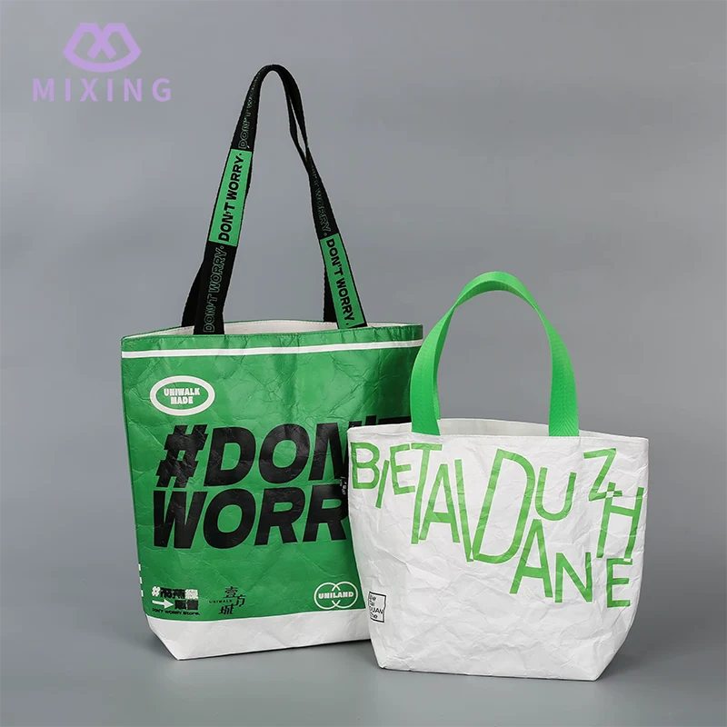Mieszanie wspiera tworzenie logo i regulację kolorów. Jeśli chcesz dostosować rozmiar lub położenie logo, możesz się porozumieć. Można również wybrać kolor toreb Tyvek With Logo. Oprócz zwykłego jasnego khaki i złamanej bieli, możesz także dostosować ekskluzywny kolor o niskim nasyceniu, aby logo lepiej pasowało do korpusu torby.