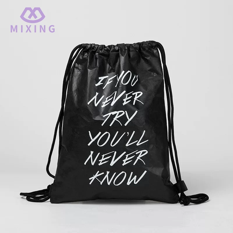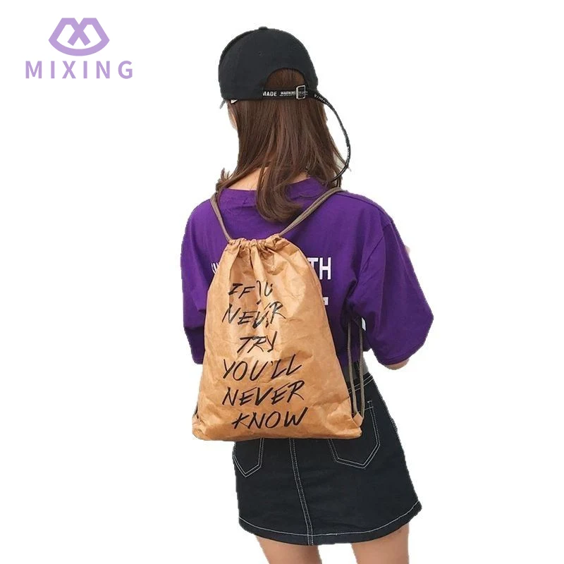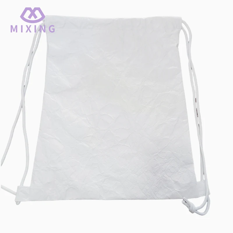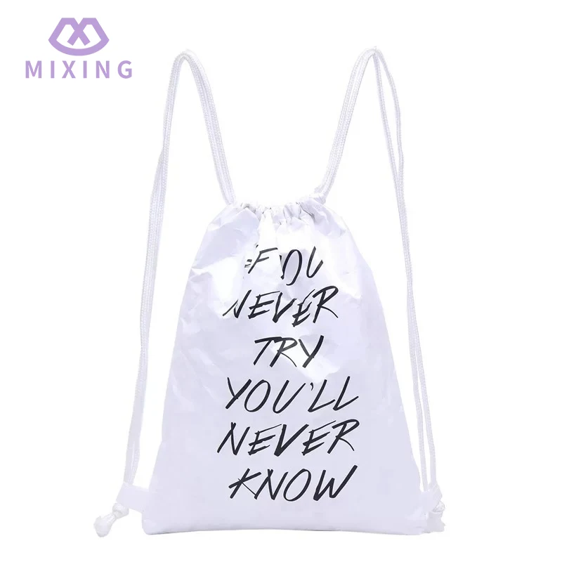 Część sznurkowa zmywalnego plecaka ze sznurkiem Tyvek produkowanego przez producenta Mixing to poszerzona nylonowa opaska, a nie cienki sznurek, nie będzie ciasna podczas noszenia na ramieniu i można ją łatwo ciągnąć. Otwór torby jest dobrze uszczelniony po dokręceniu, więc nie musisz się martwić, że zawartość zostanie wyrzucona na zewnątrz w wietrzne dni.